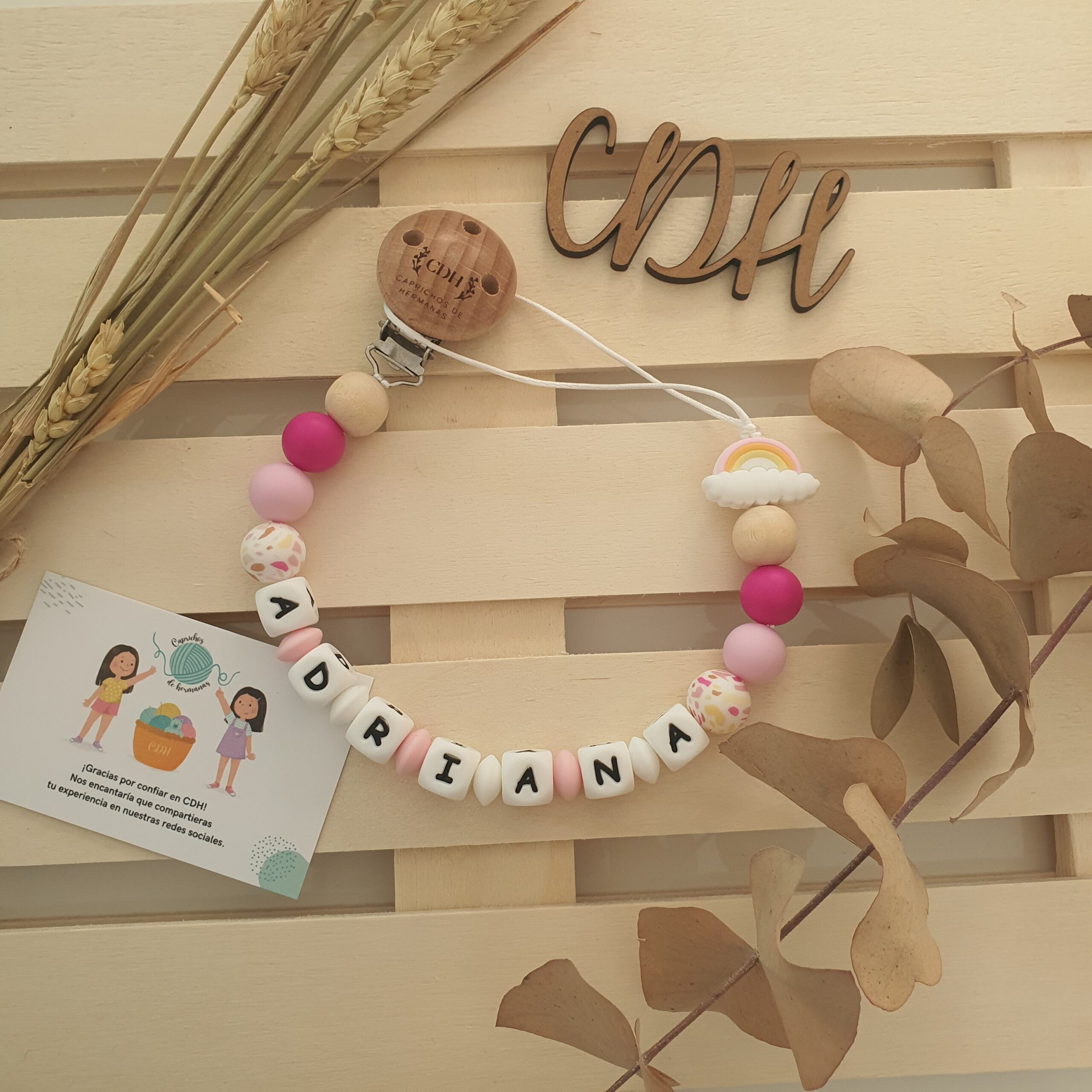 Entra en el encantador mundo de la personalización con nuestro chupetero personalizado. Sabemos que cada bebé es único y especial, y merece accesorios que reflejen su singularidad. Con nuestro chupetero, puedes llevar esto un paso más allá. Cada chupetero es una combinación de estilo y seguridad, diseñado para mantener el chupete de tu pequeño seguro y cómodo. Sin embargo, no se trata solo de funcionalidad, sino de creatividad. Queremos que sientas la alegría de crear algo verdaderamente único para tu bebé, algo que cuente una historia y haga brillar los ojitos de tu pequeño.