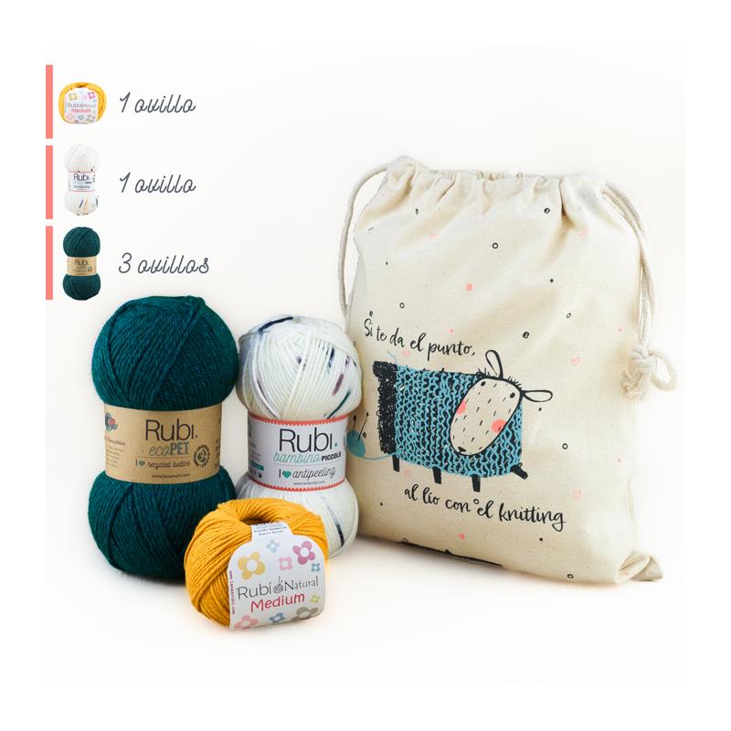 Como un bono adicional, recibirás una bolsa orgánica pequeña con la divertida frase «Si te da el punto, al lío con el knitting». Esta bolsa te permitirá llevar tus materiales de tejido de manera ecológica y con estilo.