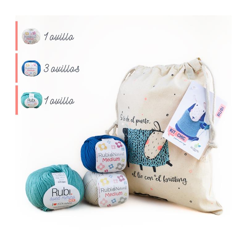El kit incluye todo lo que necesitas: 3 ovillos de Rubí Natural Medium en color 015 y 1 ovillo en color 001, junto con 1 ovillo de Rubí Sweet Merino New en color 004. Además, recibirás el patrón impreso con instrucciones detalladas para guiarte en cada paso de la creación. Y para mantener todo organizado, te proporcionamos una práctica bolsa orgánica pequeña.