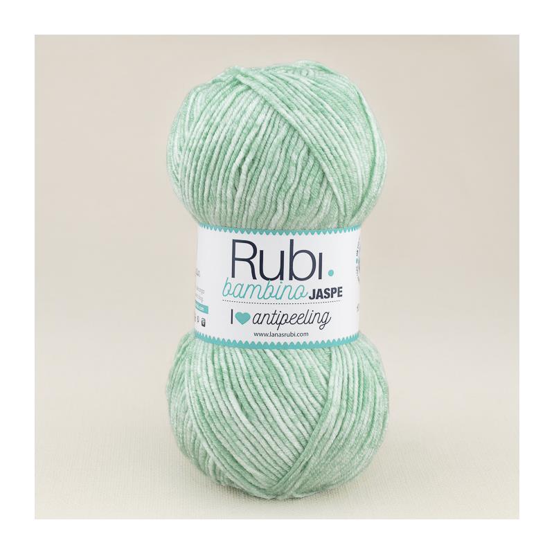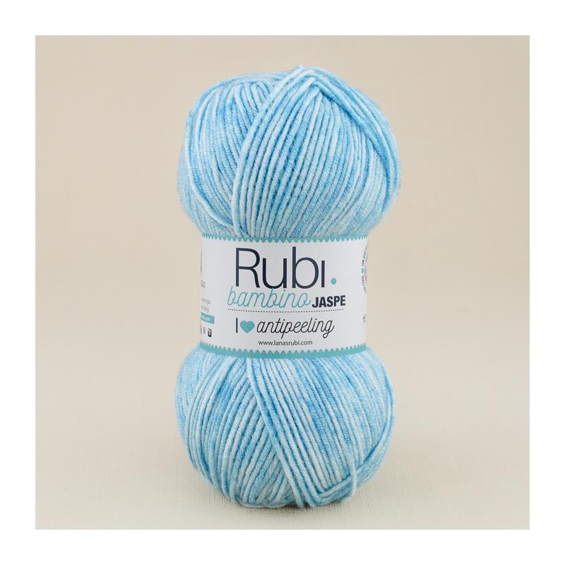 Lana Rubi Bambino Jaspe es una nueva variedad de la popular lana para bebés de la marca Rubí. Esta lana, como su nombre indica, ofrece un efecto jaspeado muy cool con la posibilidad de combinar tonos lisos con seis nuevos colores. Los tonos incluyen rosas, celestes, crudos y un tono amarillo unisex que se convierte en un básico para cualquier canastilla.