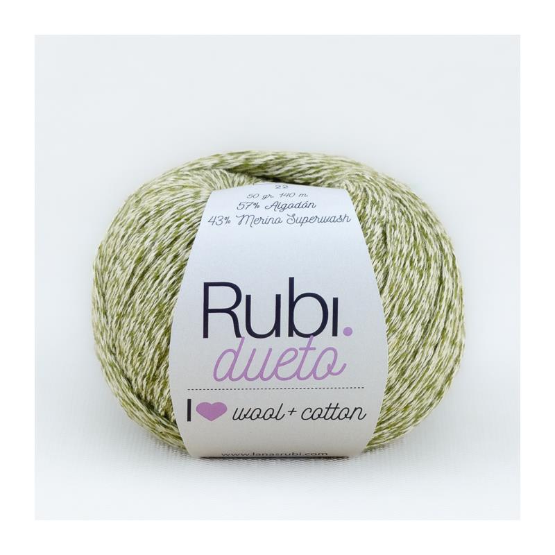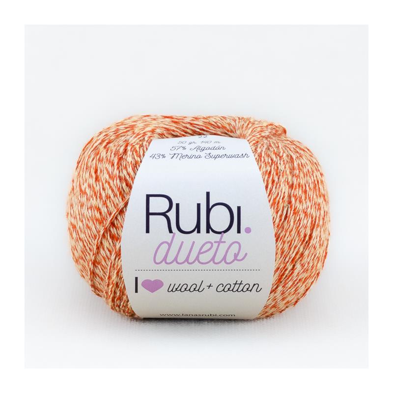 la Lana RUBI Dueto es una mezcla perfecta de algodón y merino, que te ofrece ovillos extra suaves de 50 gramos y 140 metros de longitud. Con una composición de 57% algodón y 43% merino superwash, este hilo es ideal para tus prendas de entretiempo, ya que es fresco, ligero y cómodo de llevar.