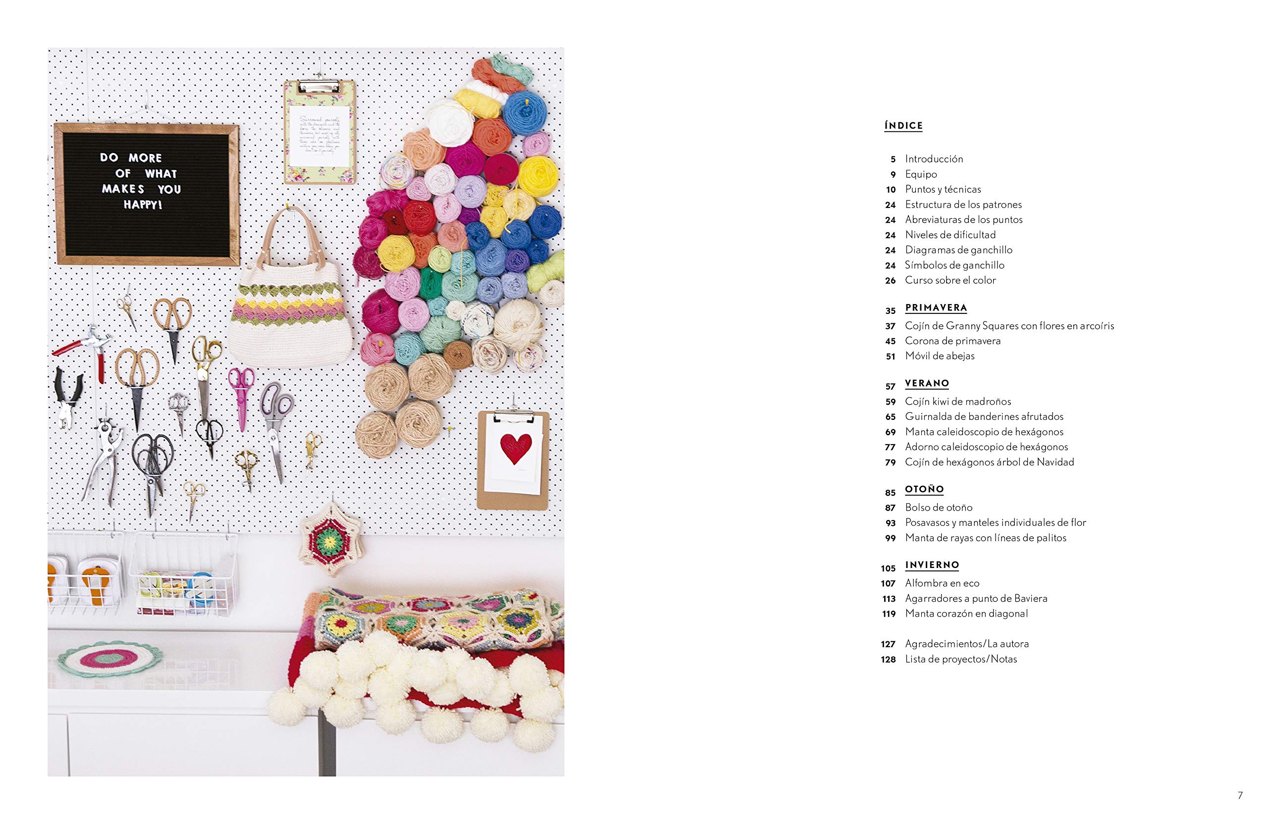Cada proyecto en este libro es un destello de creatividad, diseñado para celebrar cada estación del año. Desde cojines de Granny Squares que evocan la primavera hasta guirnaldas de banderines que capturan la esencia del verano. Desde manteles individuales de flores que adornan el otoño hasta alfombras acogedoras que abrazan el invierno. Estos proyectos actuales y prácticos ilustran cómo el ganchillo puede acompañarte durante todas las etapas del año.