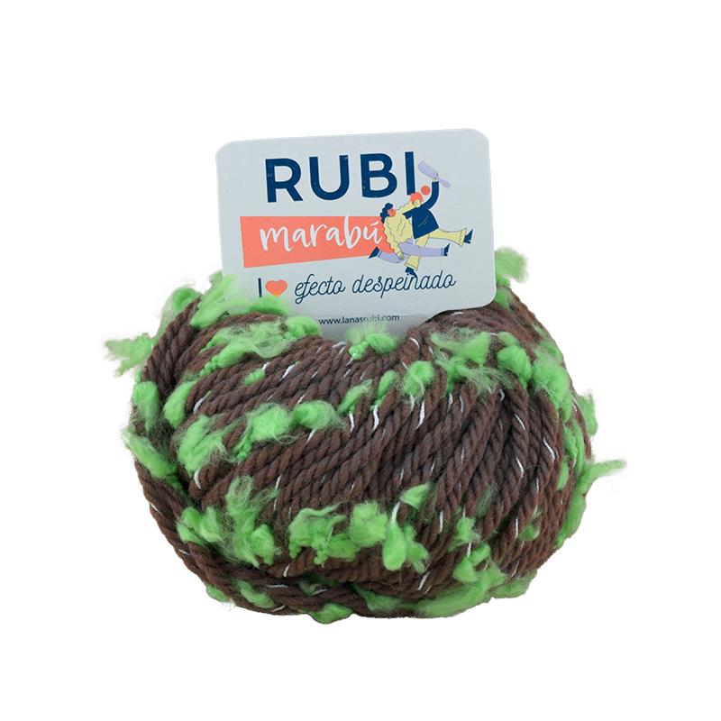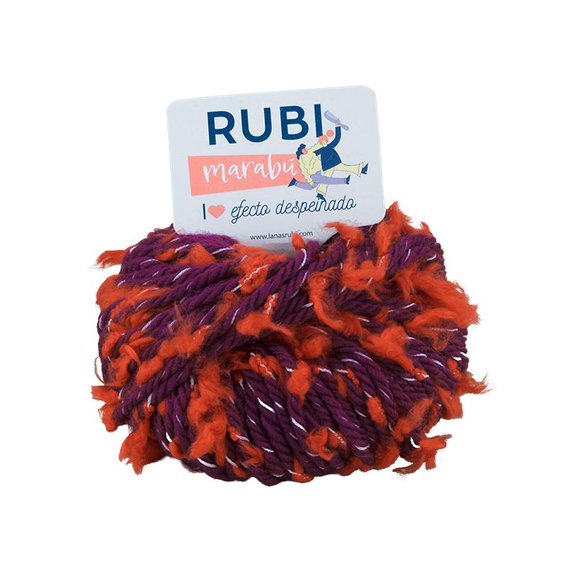 Rubí Marabú es una lana bicolor con un sorprendente efecto punky, ideal para tejedoras atrevidas que buscan un material divertido y ácido. Su diseño es perfecto para tejer puntos sencillos, dejando que el acabado único sea el protagonista.